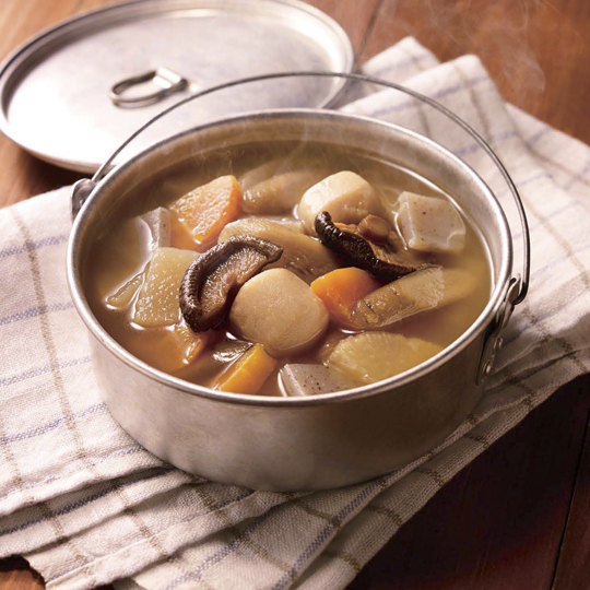 大きめカットの野菜で、満足感抜群のけんちん汁です。 野菜の味を引き立てる4つの出汁をブレンドし、素朴で奥深い味わいに仕上げました。