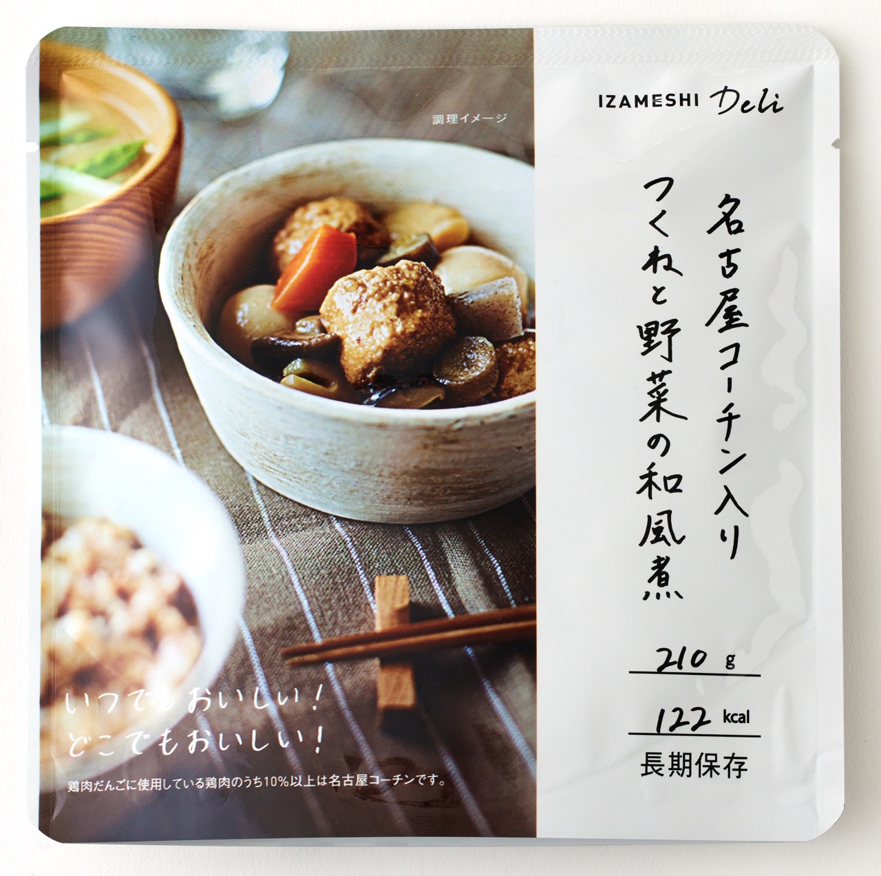 野菜(さといも、たけのこ、にんじん、ごぼう)、鶏肉だんご(鶏肉(名古屋コーチン10%以上)、玉ねぎ、パン粉、その他)(国内製造)、こんにゃく、しいたけ水煮、白だし、しょうゆ、醸造調味料、砂糖、米粉/水酸化Ca、(一部に卵・小麦・大豆・鶏肉・豚肉を含む)