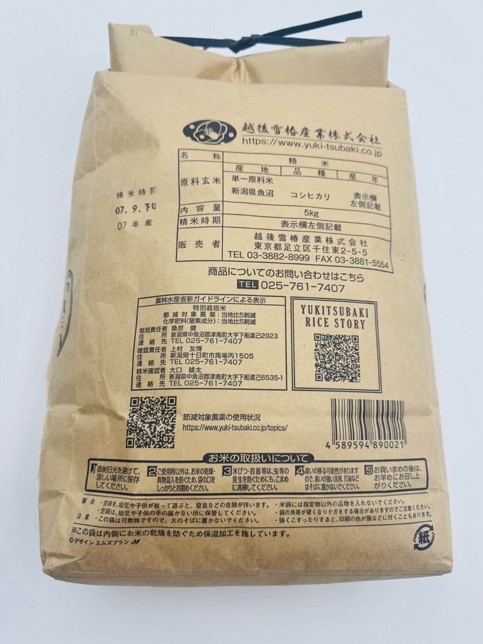 特別栽培米100%プレミアム 魚沼産こしひかり 雪椿 5kg 令和7年産